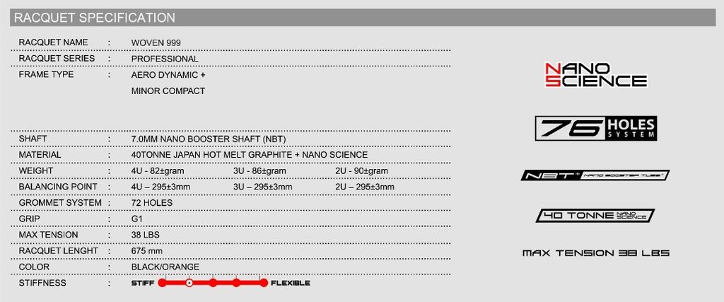 Package includes: 1 x FELET Woven 999 Badminton Racket